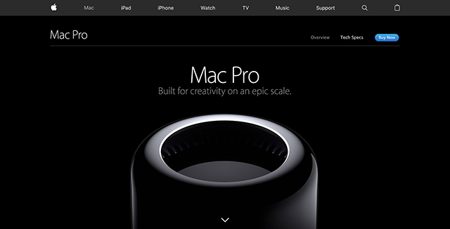 蘋果在他們的Mac Pro頁面上使用了滾動劫持。