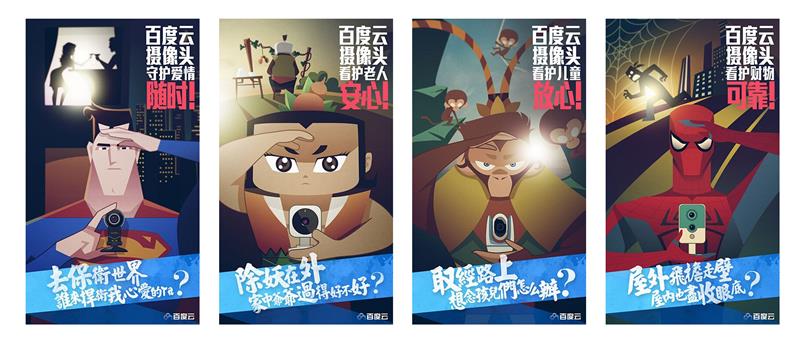 1. 百度云攝像頭的幾張大海報(bào),幾個(gè)關(guān)鍵詞:隨時(shí)、安心、放心、可靠,海報(bào)中的人物都是家喻戶曉的superstar,并且整個(gè)頁面有一定的故事性和想象空間,讓人印象很深刻,并且調(diào)起了好奇心。