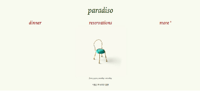 在這個(gè)網(wǎng)站上你會(huì)注意到的第一件事就是驚人的攝影。它還包括非常簡(jiǎn)單的導(dǎo)航,所有重要的按鈕都放在首頁(yè)的頂部。當(dāng)你開(kāi)始向下滾動(dòng)時(shí),你會(huì)注意到餐廳的簡(jiǎn)短描述。整體導(dǎo)航是極簡(jiǎn)主義的,而且效果很好。白色是主要的顏色,它對(duì)其他的內(nèi)容有很大的影響。